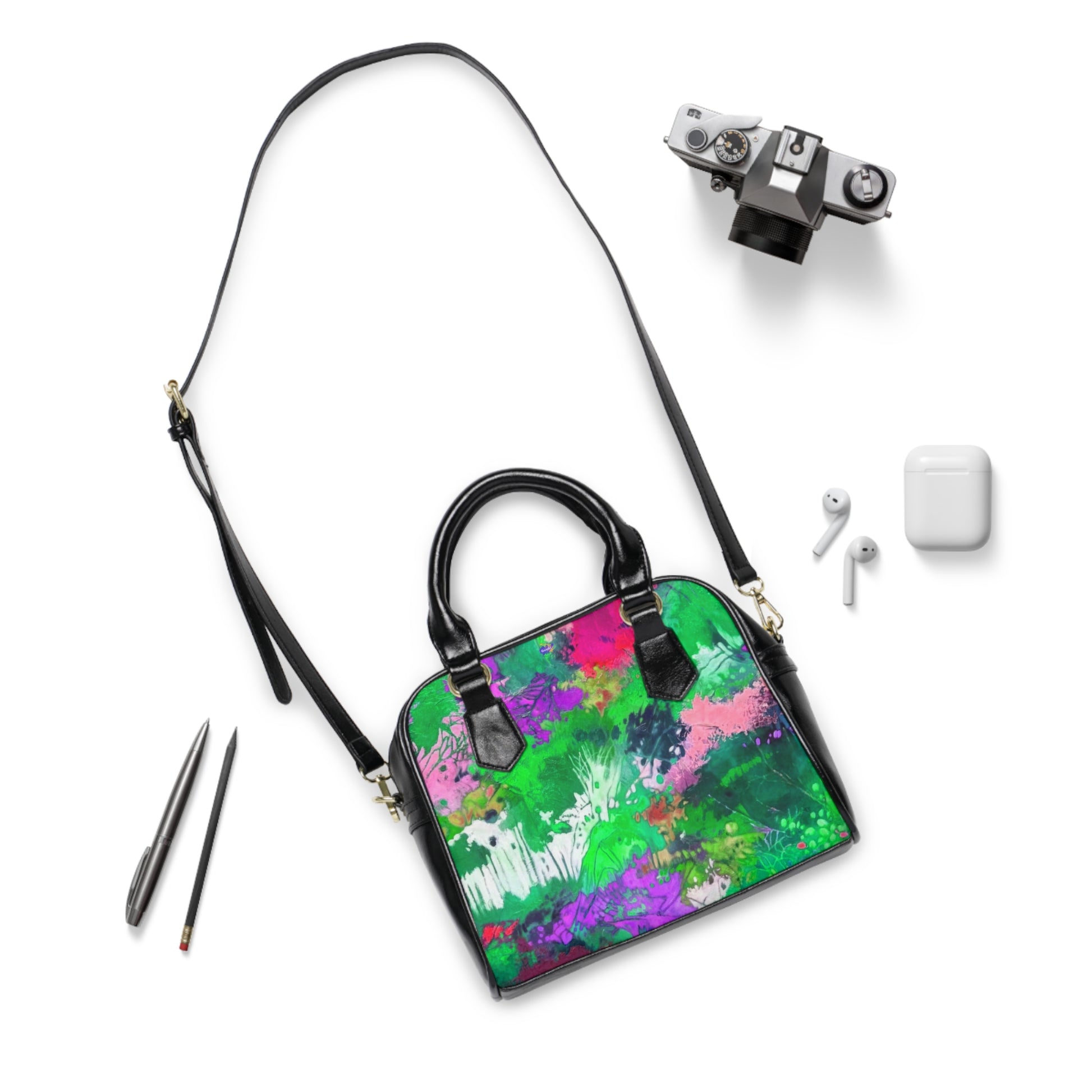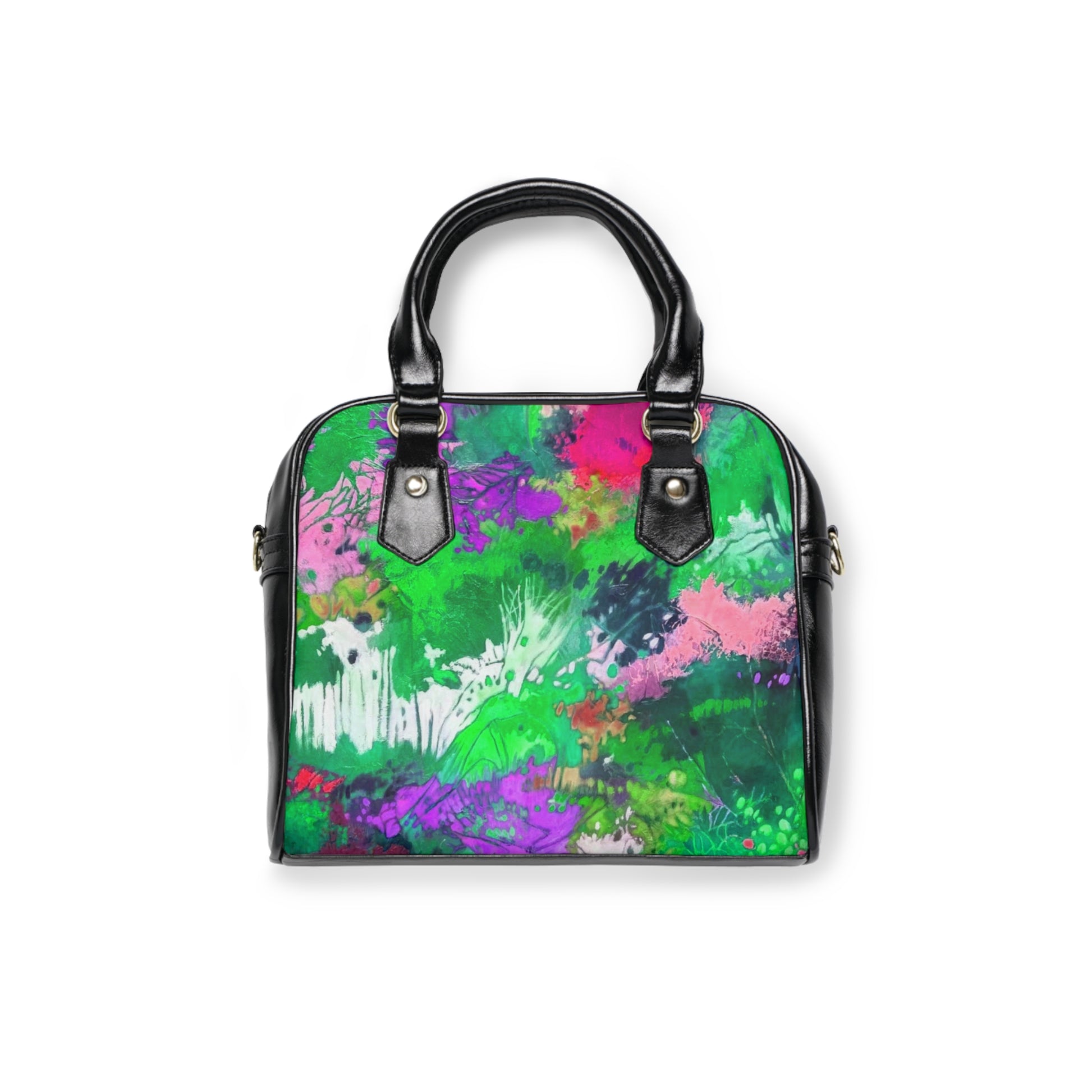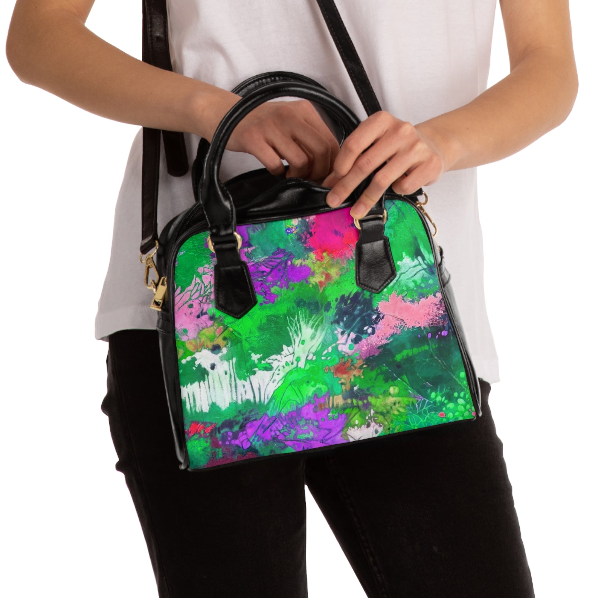 Aquesta bossa d'espatlla personalitzada se centra en un estil artístic i la practicitat que perdura en el temps. Compta amb un tancament superior amb cremallera i una corretja d'espatlla de roba ajustable i removible, cosa que li permet funcionar també com una elegant bossa de mà perfecte per a qualsevol ocasió. .: Cuir PU d'alta qualitat al 100% .: Folre de polièster .: Nanses negres .: Corretja d'espatlla de cuir PU removible i ajustable .: Mida única : Impressió doble cara