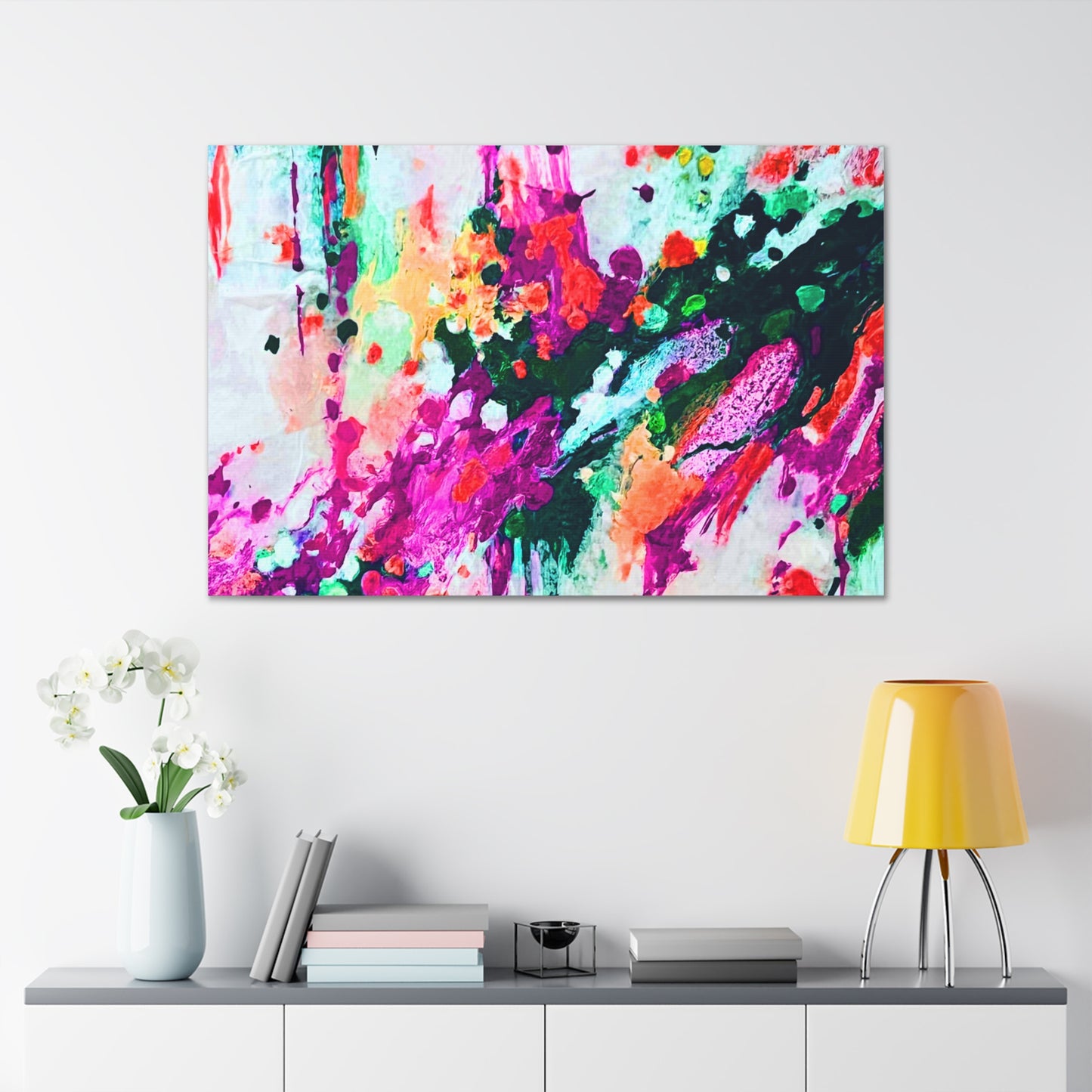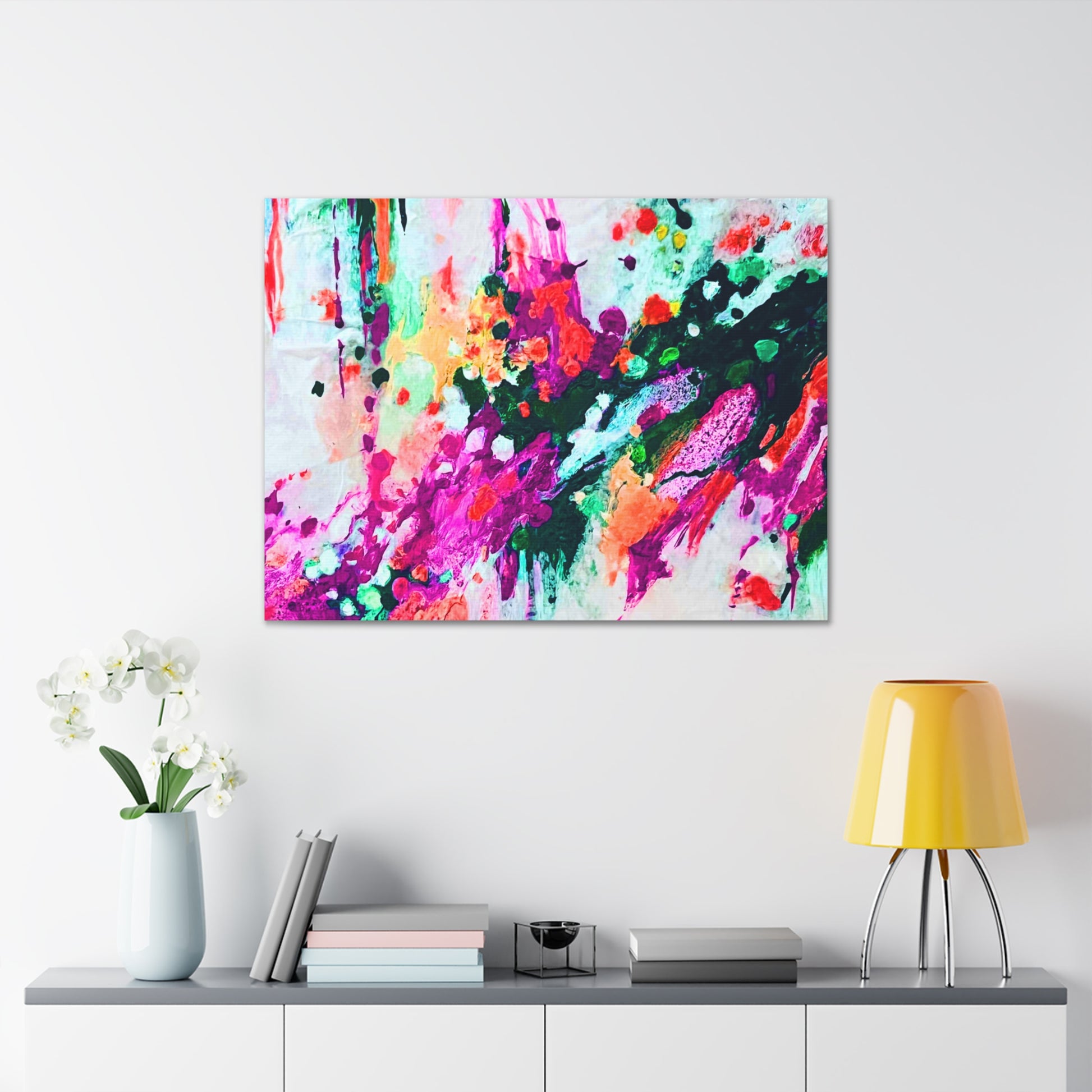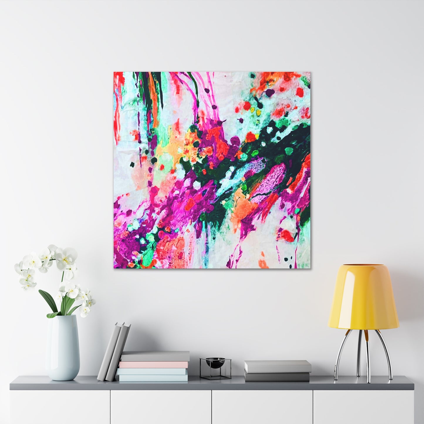 Care instructions: If the canvas does gather any dust, you may wipe it off gently with a clean, damp cloth.